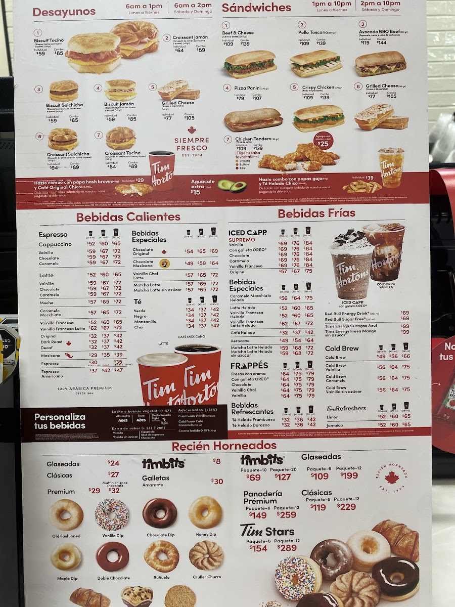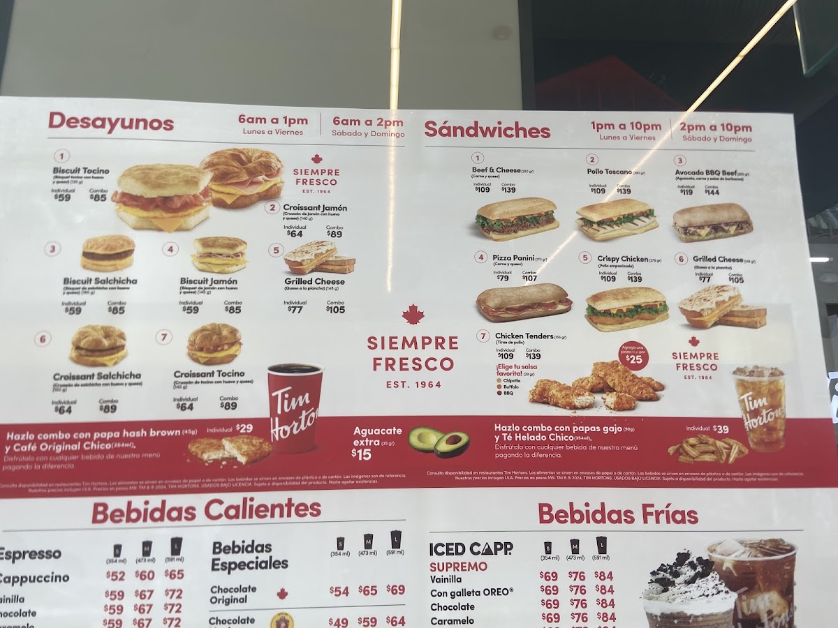 Tim Hortons Cetram Martín Carrera Menu